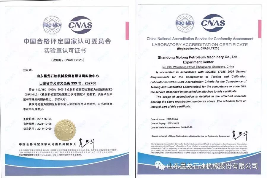 山東墨龍石油機械股份有限公司實驗中心近期順利通過CNAS(國家實驗室認(rèn)可)擴項、換證現(xiàn)場評審,並於2017年9月4日取得新的證書。