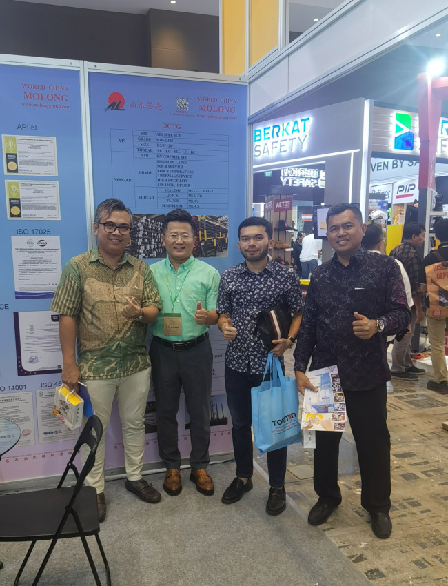 展會(huì)上,山東墨龍分管負(fù)責(zé)同誌積極參見了印尼國家石油公司的相關(guān)領(lǐng)導(dǎo),詳細(xì)介紹了公司油管、油套管、抽油泵、抽油桿等主要產(chǎn)品,且圍繞公司產(chǎn)業(yè)布局、市場拓展等方面進(jìn)行了系統(tǒng)闡述。期間與同行業(yè)石油裝備公司及製造商針對市場和鉆采技術(shù)等做了深入交流,詳細(xì)了解了油氣勘探、開采、生產(chǎn)、運(yùn)輸、儲(chǔ)存等方面的專業(yè)知識。同時(shí),通過自身宣傳讓更多的客戶進(jìn)一步了解了公司的生產(chǎn)狀況和產(chǎn)品內(nèi)容,更好地打造公司國際知名度。